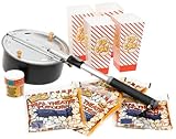 - Comes complete with 5 Real Theater Popcorn Popping Kits. Each kit includes: Fresh Popping Corn, Our Secret Buttery Salt and Gourmet Popping Oil ? so no measuring and no mess. Ideal for outdoor use.